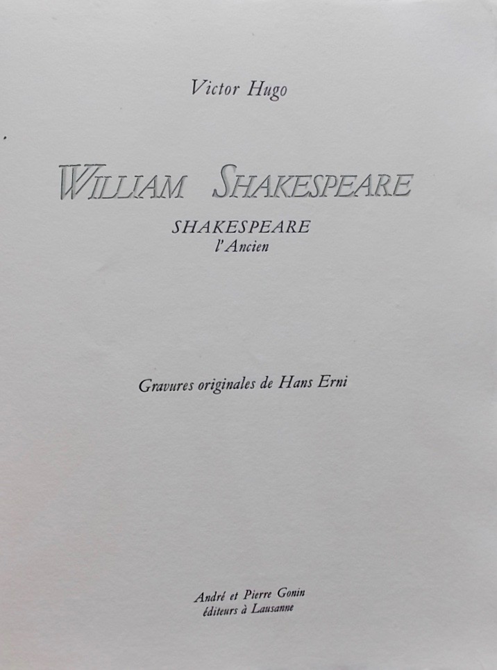 ![[ERNI] - HUGO (Victor) William Shakespeare. Shakespeare l'Ancien. Lausanne, André et Pierre Gonin, 1976. – Image 2](https://cabinetamateur.ch/wp-content/uploads/2025/10/36271_2.jpg)