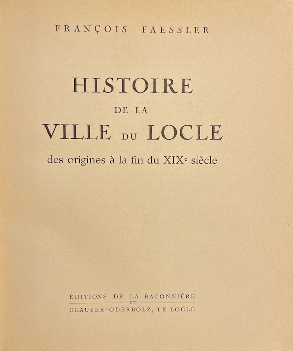 FAESSLER (François) Histoire de la ville du Locle des origines à la fin du XIXe siècle. Neuchâtel, La Baconnière, 1960.