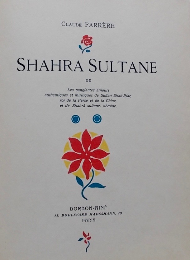FARRERE (Claude) Shahra Sultane, ou Les sanglantes amours authentiques et mirifiques de Sultan Shah’Riar, roi de Perse et de la Chine, et de Shahrâ sultane, héroïne. Paris, Dorbon-Ainé, 1923.