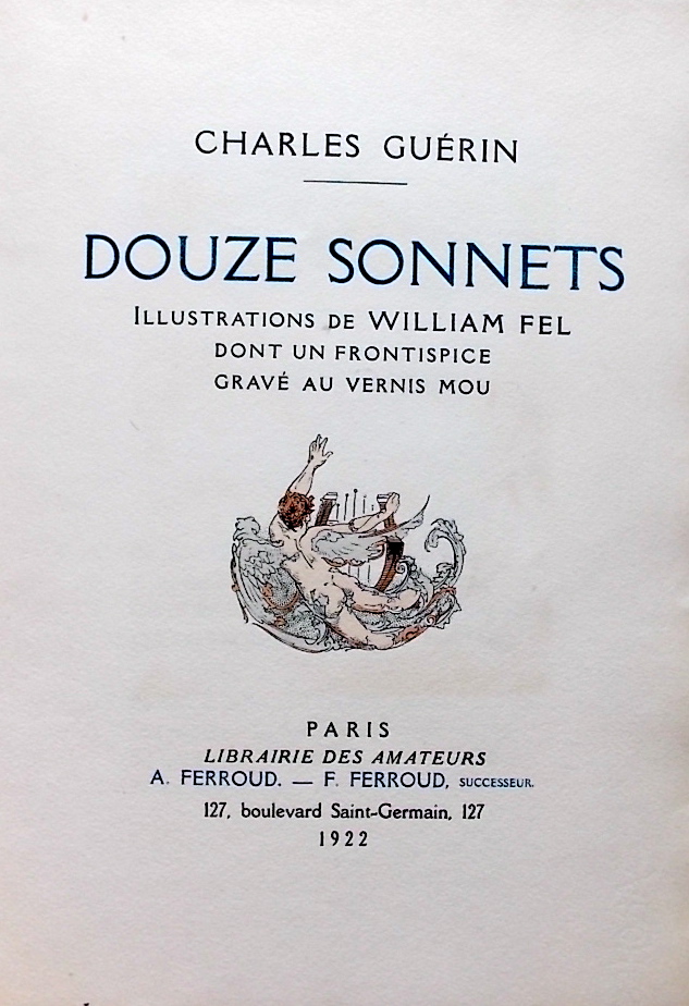 [FEL (William)] – GUERIN (Charles) Douze sonnets. Paris, Librairie des Amateurs – A. & F. Ferroud, 1922.