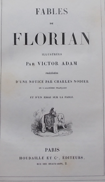 FLORIAN – ADAM (Victor) ill. Fables de Florian illustrées par Victor Adam. Paris, Houdaille & Cie, [1843].