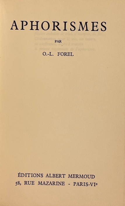 FOREL (Oscar Louis) Aphorismes. Paris, Editions Albert Mermoud, 1957.