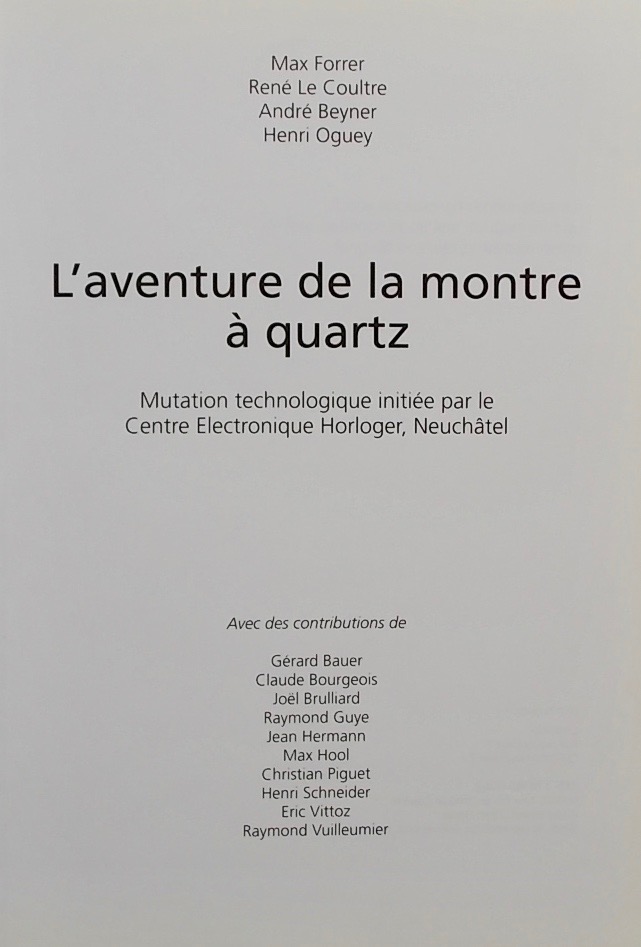FORRER (Max) et al. L’aventure de la montre à quartz. Neuchâtel, Centre Electronique Horloger, 2002.
