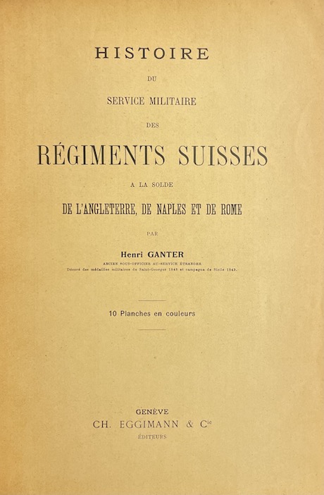 GANTER (Henri) Histoire du service militaire des régiments suisses à la soldes de l’Angleterre, de Naples et de Rome. Genève, Eggimann et Cie, [1901].