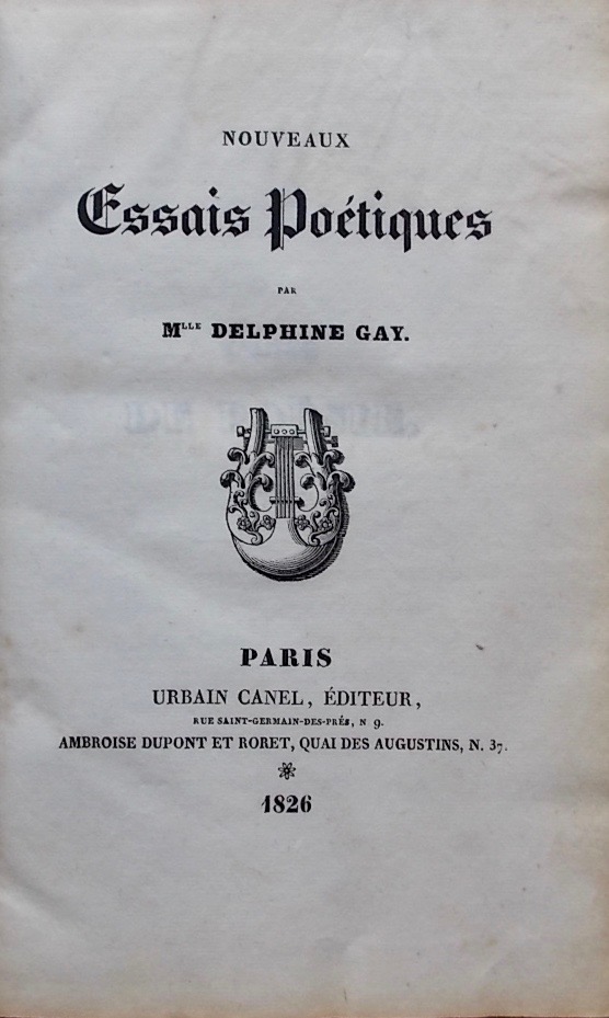 ![GAY (Delphine) [Madame Emile de Girardin] Nouveaux essais poétiques. Paris, Urbain Canel, 1826.](https://cabinetamateur.ch/wp-content/uploads/2025/10/37085_1.jpg)