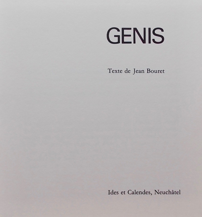 [GENIS (René)] – BOURET (Jean) Genis. Neuchâtel, Ides et Calendes, 1976.