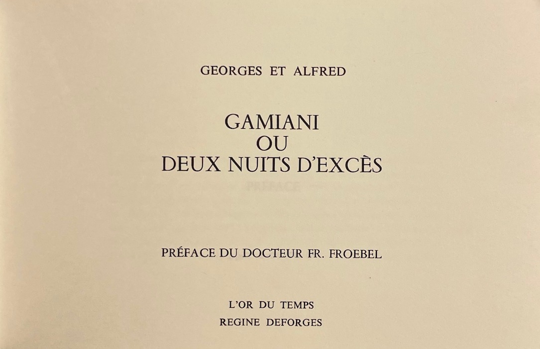 GEORGES ET ALFRED Gamiani, ou deux nuits d’excès. Paris, L’Or du Temps – Régine Deforges, 1970.