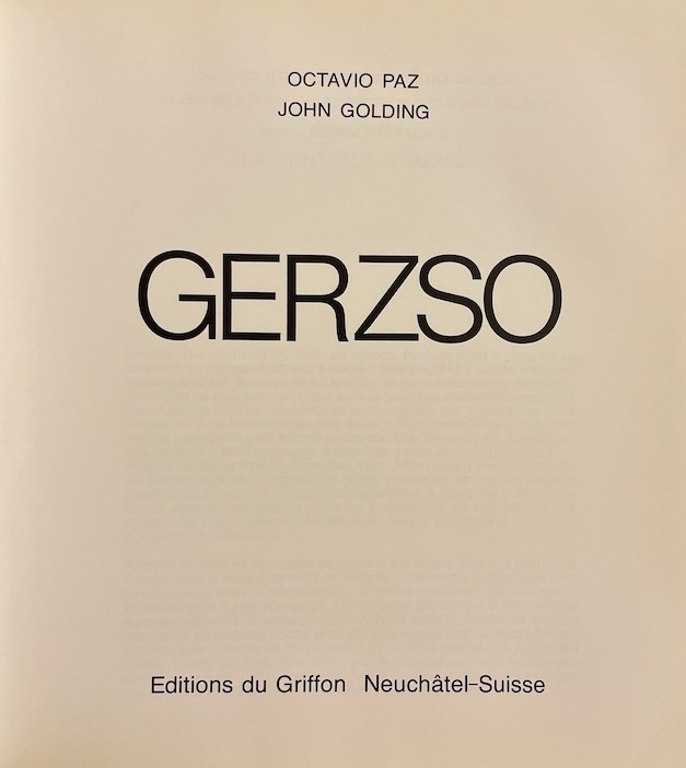 [GERZSO] – PAZ (Octavio) & GOLDING (John) Gunther Gerzso. Neuchâtel, Editions du Griffon (coll. Arts plastiques du XXe siècle), 1983.