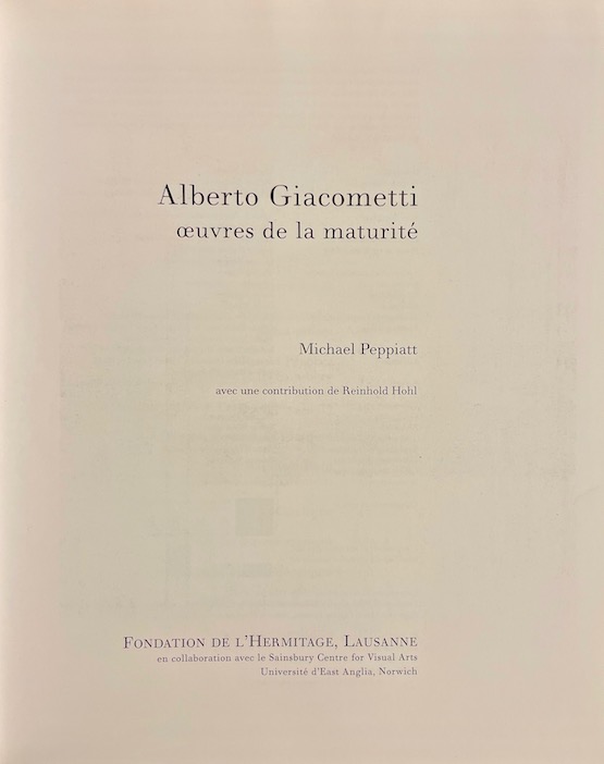 [GIACOMETTI] – PEPPIATT (Michael) Alberto Giacometti. Oeuvres de la maturité. Lausanne, Fondation de l’Hermitage, 2001.