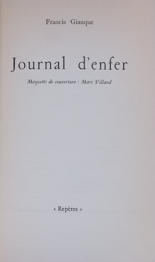 GIAUQUE (Francis) Journal d’enfer. [Paris], Repères, 1978