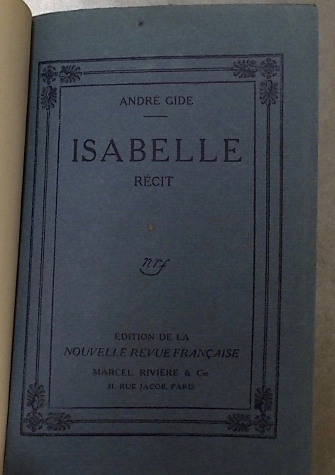 GIDE (André) Isabelle. Paris, Nouvelle Revue Française, 1911.
