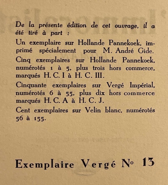 Quatre-vingt-onzième édition. Mais un des 50 exemplaires numérotés sur vergé Impérial. Exemplaire à grandes marges, absolument non rogné.
