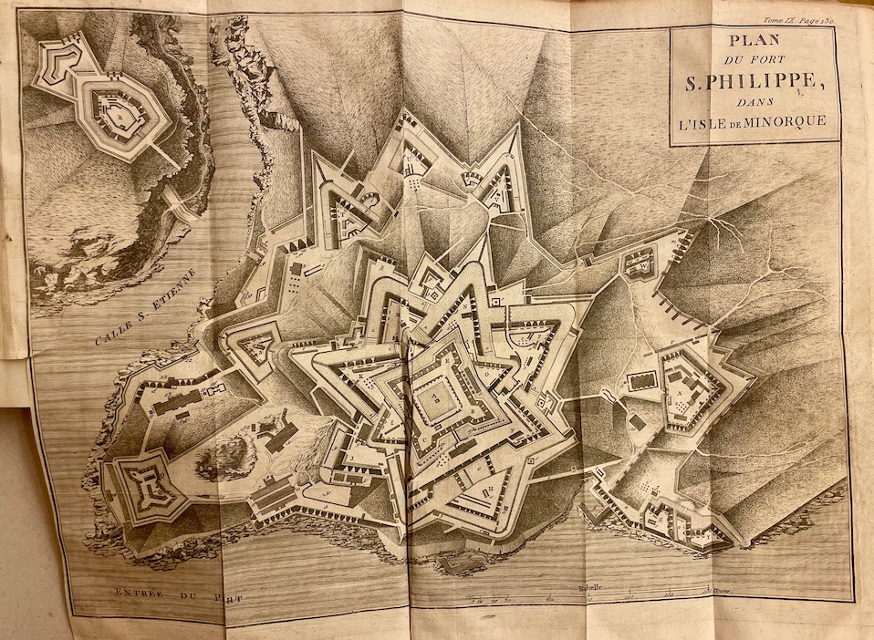 Ouvrage composé dans la Bibliothèque et sur les papiers du Maréchal, et sur ceux de plusieurs Courtisans ses contemporains. Avec des Cartes, Plans et Portraits gravés en taille-douce. Seconde Édition. Avec des corrections considérables et des augmentations. Avec un portrait gravé de Richelieu en frontispice et une vue gravée dépliante dans le premier volume; un frontispice gravé dans le tome 3 ; 2 tableaux dépliants aux volumes V et VI; 3 portraits gravés dans le tome 7; une grande vue à vol d’oiseau gravée et dépliante du Fort de S. Phillipe dans le volume 9. une galerie de ver dans le tome 4, sinon très bon état général.