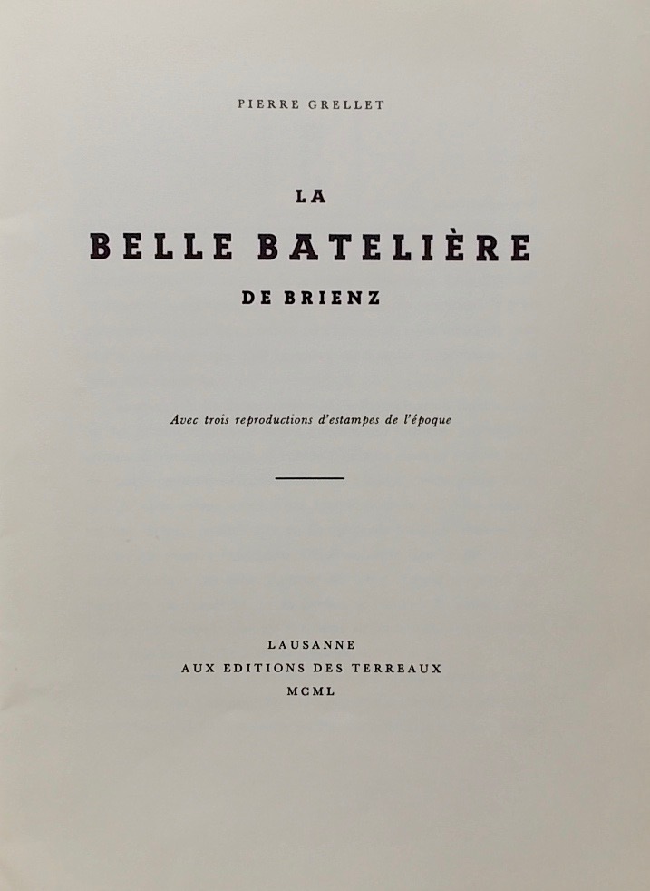 GRELLET (Pierre) La belle batelière de Brienz. Lausanne, Editions des terreaux, 1950.