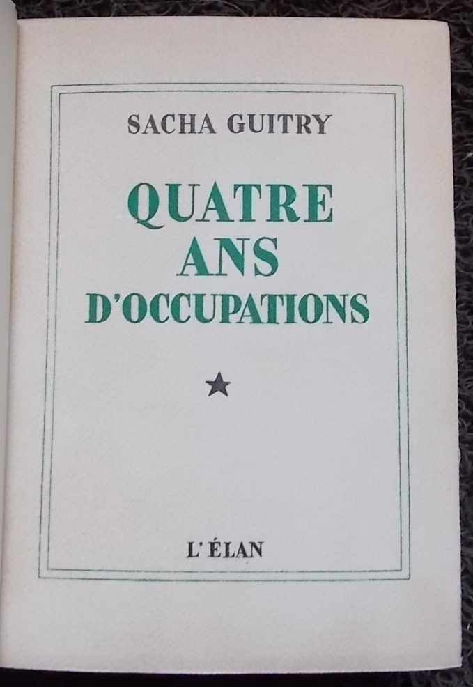 GUITRY (Sacha) Quatre ans d’occupation. Paris, L’Elan, 1947.