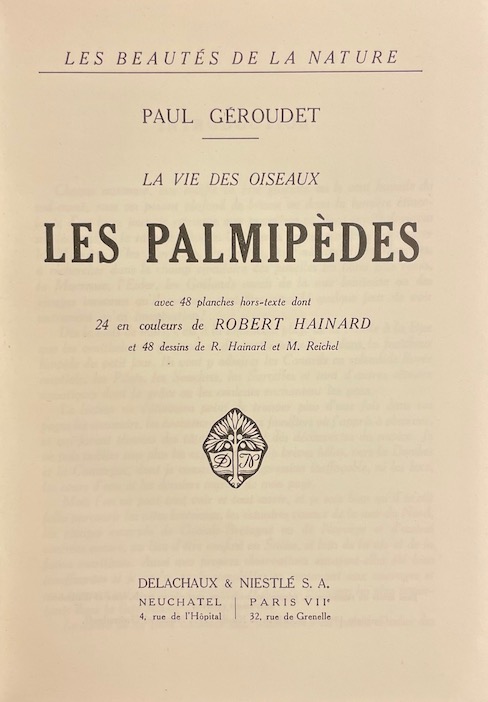 [HAINARD] – GEROUDET (Paul) Les palmipèdes. Neuchâtel et Paris, Delachaux & Niestlé (coll. Les beautés de la nature), [1946].