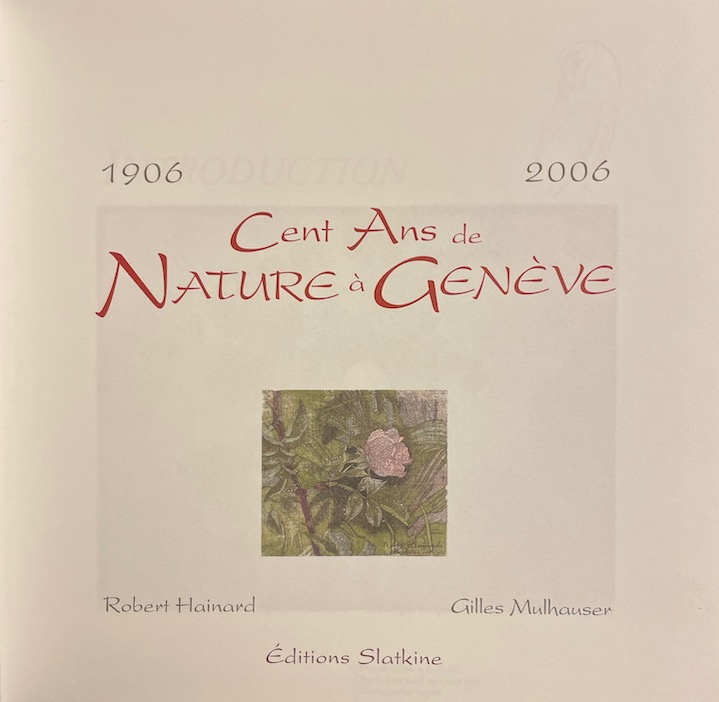 HAINARD (Robert) – MULHAUSER (Gilles) Cent ans de nature à Genève (1906-2006). Genève, Slatkine (coll. L’oeil ouvert), 2006.