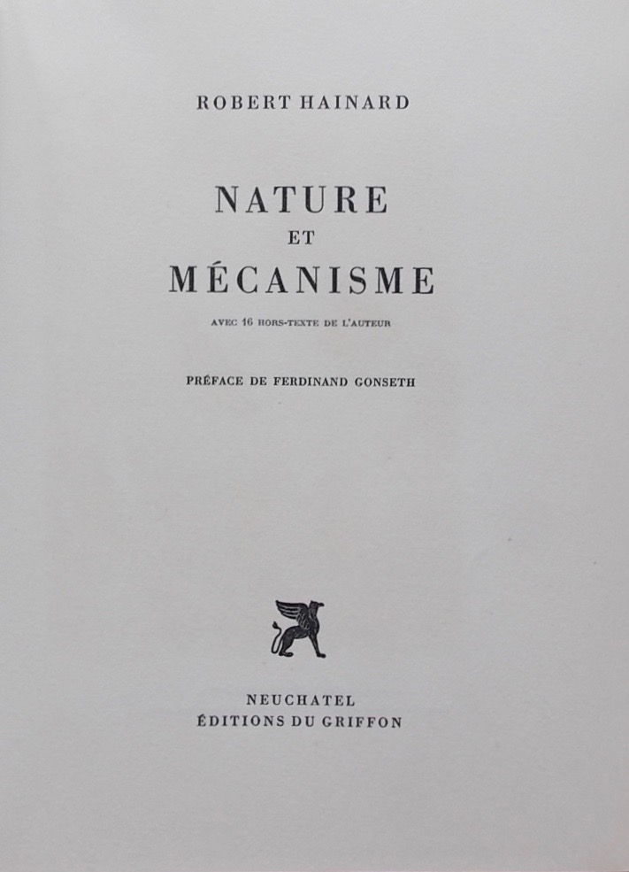 HAINARD (Robert) Nature et mécanisme. Neuchâtel, Griffon (coll. Les problèmes de la philosophie des sciences), 1946.