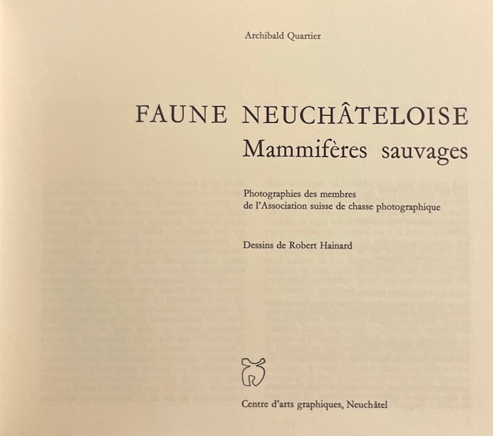 HAINARD (Robert) – QUARTIER (Archibald) Faune neuchâteloise, mammifères sauvages. Neuchâtel, Centre d’Arts Graphiques (coll. Beautés du patrimoine neuchâtelois), 1976.