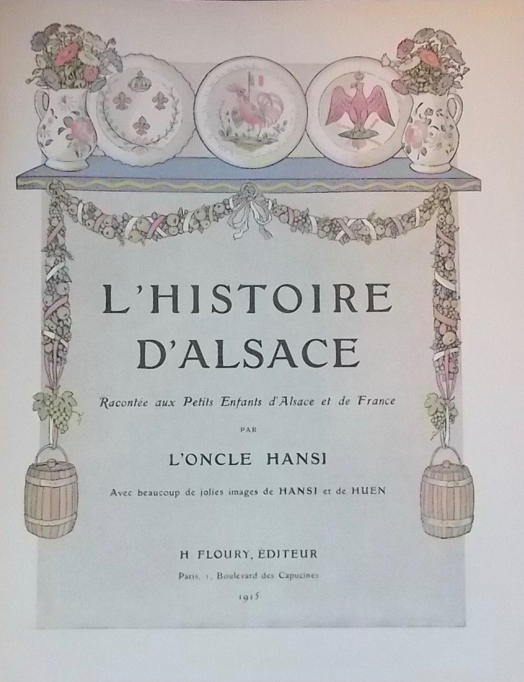 HANSI (Jean-Jacques Waltz, dit) L’histoire d’Alsace racontée aux petits enfants d’Alsace et de France par l’oncle Hansi. Paris, Floury, 1915.