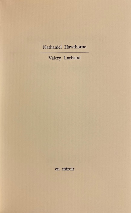 HAWTHORNE (Nathaniel) – LARBAUD (Valery) Idées et germes de nouvelles traduits et préfacés par Valery Larbaud. Montpellier, Fata Morgana, 1979.