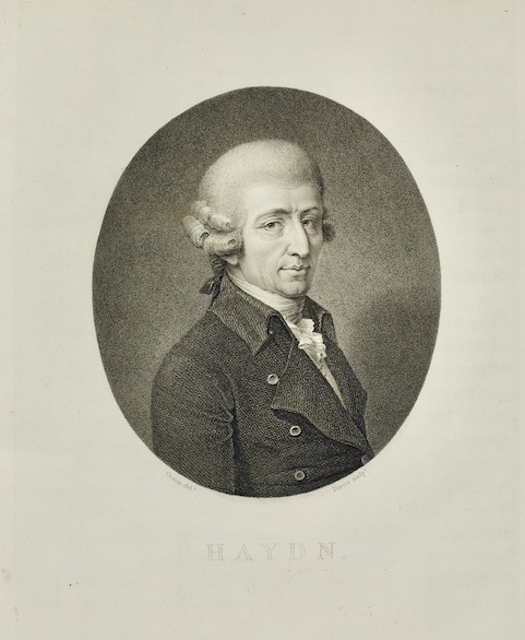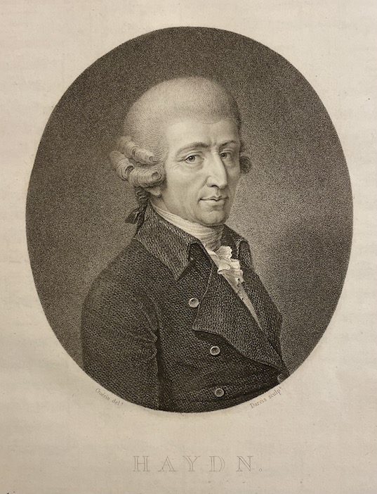 Avec liste d’abonnement et, en frontispice, un beau portrait de Haydn, par Pierre-Narcisse Guérin, sculpté par Louis Darcis et gravé par Aubert. Les pages de titre ainsi que le texte musical sont également entièrement gravés.