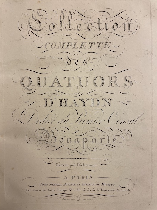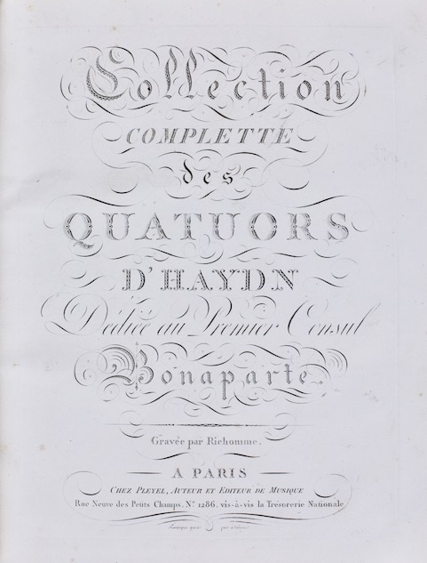 COLLECTION COMPLÈTE des QUATUORS D’HAYDN Dédiée au Premier Consul BONAPARTE Gravée par Richomme.