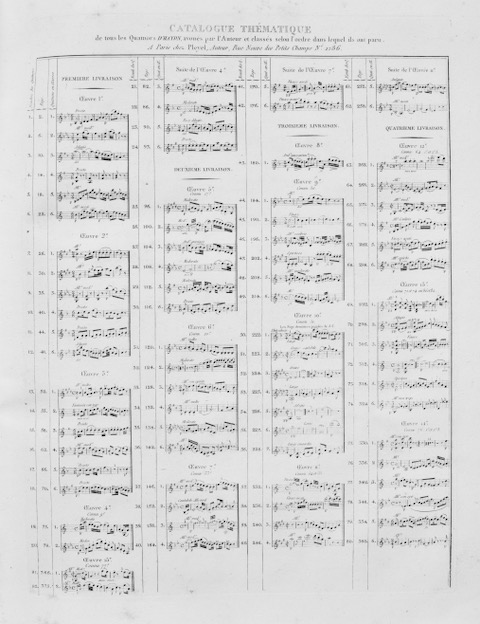 Catalogue thématique de tous les quatuors d’Haydn, avoués par l’Auteur et classés selon l’ordre dans lequel ils ont paru ;