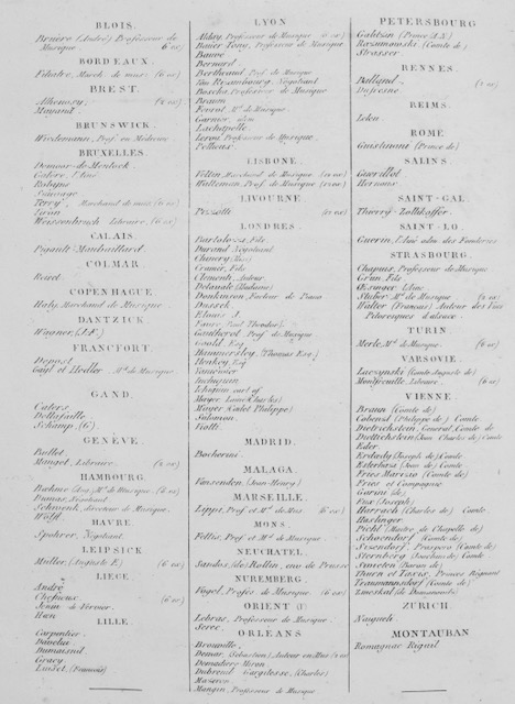 Cette œuvre à caractère exclusif était réservée aux quelques 290 souscripteurs, dont : Sa Majesté l’Empereur-Roi, à Vienne, S.A.R le Grand-Duc de Toscanne, S.A.R. la Grande Duchesse,[…], Boieldieu, Cherubini, Kreutzer, Labiche, Rouget de l’Isle, Cramer, Clementi, Dussek, Viotti, Bocherini, Razumowski, Erdœdy, Esterhazi, Schoendorf, Thurn et Taxis, […].