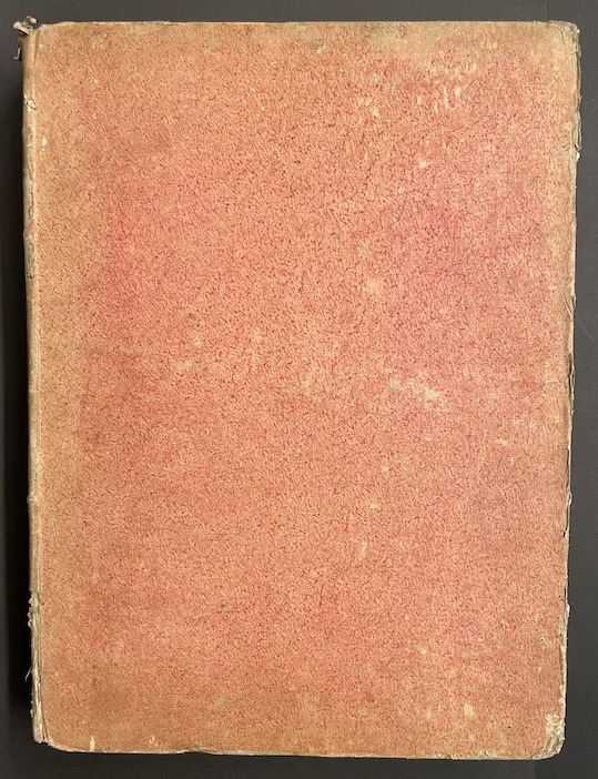 Reliure d’attente, cartonnage rouge jaspé et passé, dos lisse avec titre imprimé, In-folio, 27 x 36,5, 2,675 kg