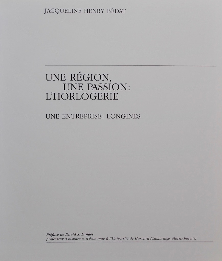 HENRY BEDAT (Jacqueline) Une région, une passion: l’horlogerie. Une entreprise: Longines. [Saint-Imier], Compagnie des Montres Longines, 1992.