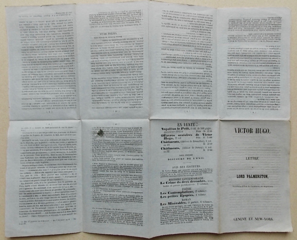 ![HUGO (Victor) Lettre à Lord Palmerston, Secrétaire d'Etat de l'intérieur, en Angleterre. Genève et New-York, sans nom, sans date [Saint-Hélier, Imprimerie Universelle, 1854]. – Image 2](https://cabinetamateur.ch/wp-content/uploads/2025/11/36024_2.jpg)