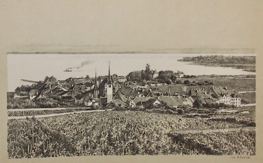 Deuxième série seule, comprenant 46 lithographies montées sur onglet sur 50 (manquent les n° 10 Château de Thielle, n°30 Creux-du-Van, n°43 et 44 Saint-Blaise) dessinées d’après nature par F. Huguenin-Lassauguette. Avec les 6 feuillets de légendes qui manquent la plupart du temps.