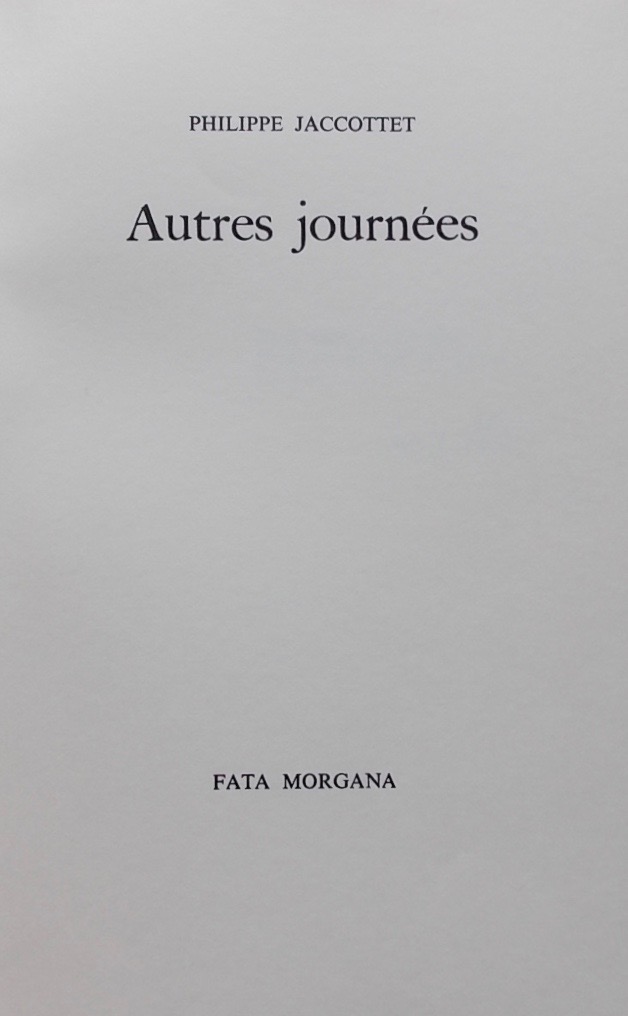 JACCOTTET (Philippe) Autres journées. Sans lieu, Fata Morgana, 1987.