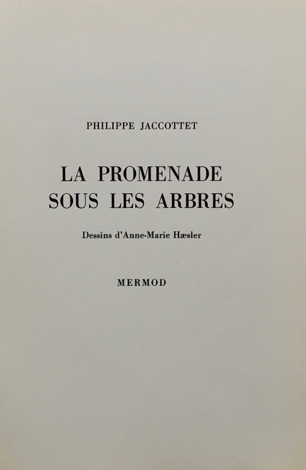 JACCOTTET (Philippe) La promenade sous les arbres. Lausanne, Mermod, 1957.