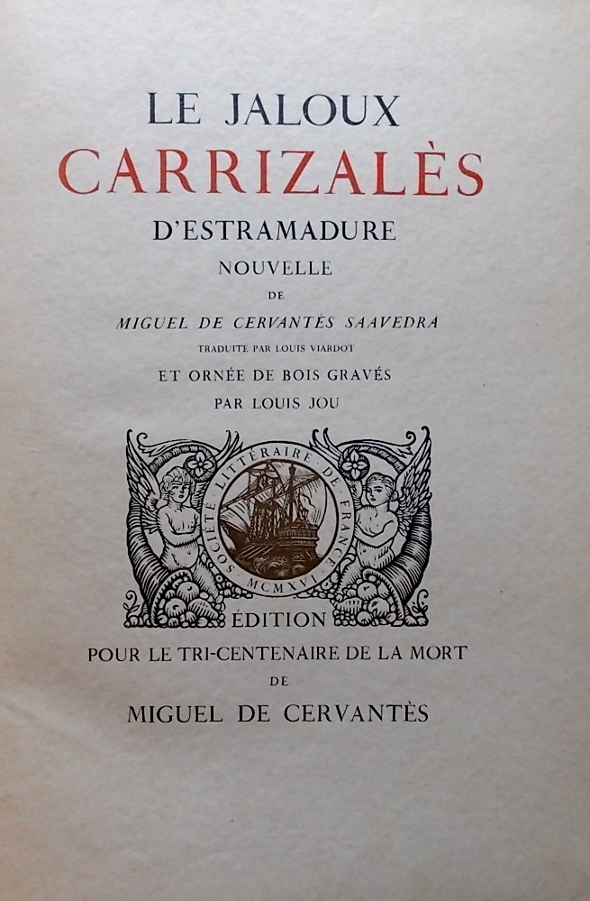 [JOU] – CERVANTES (Miguel de) le jaloux Carrizalès d’Estramadure. Paris, Société Littéraire de France, 1916.