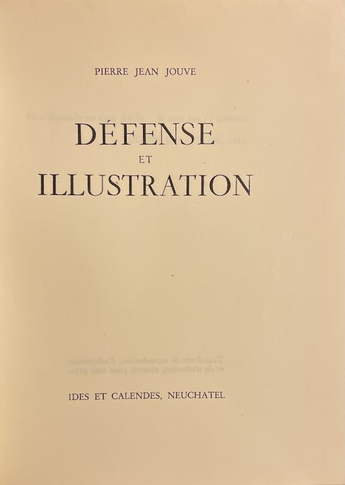 JOUVE (Pierre Jean) Défense et illustration. Neuchâtel, Ides et Calendes, 1943.