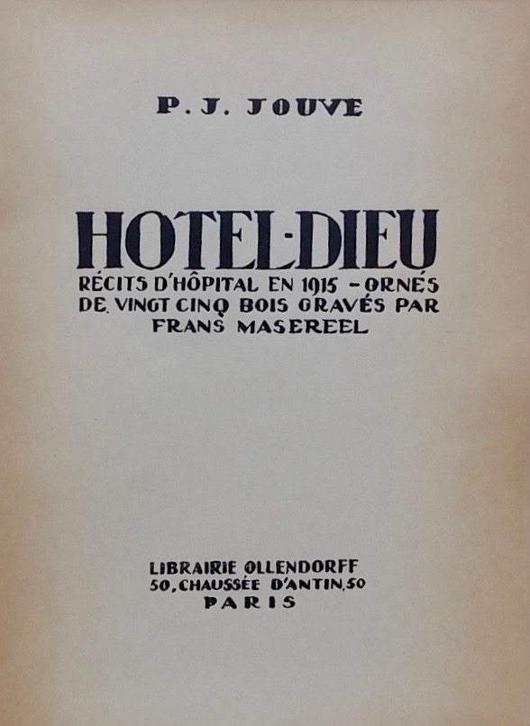 JOUVE (Pierre Jean) Hotel-Dieu. Récits d’hôpital en 1915. Paris, Librairie Ollendorff, 1919.