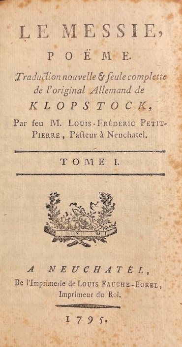 KLOPSTOCK Le Messie. Poëme. Neuchâtel, Louis Fauche-Borel, 1795.