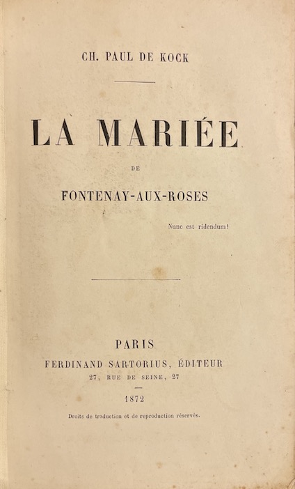 KOCK (Paul de) La mariée de Fontenay-aux-Roses. Paris, Ferdinand Sartorius, 1872.