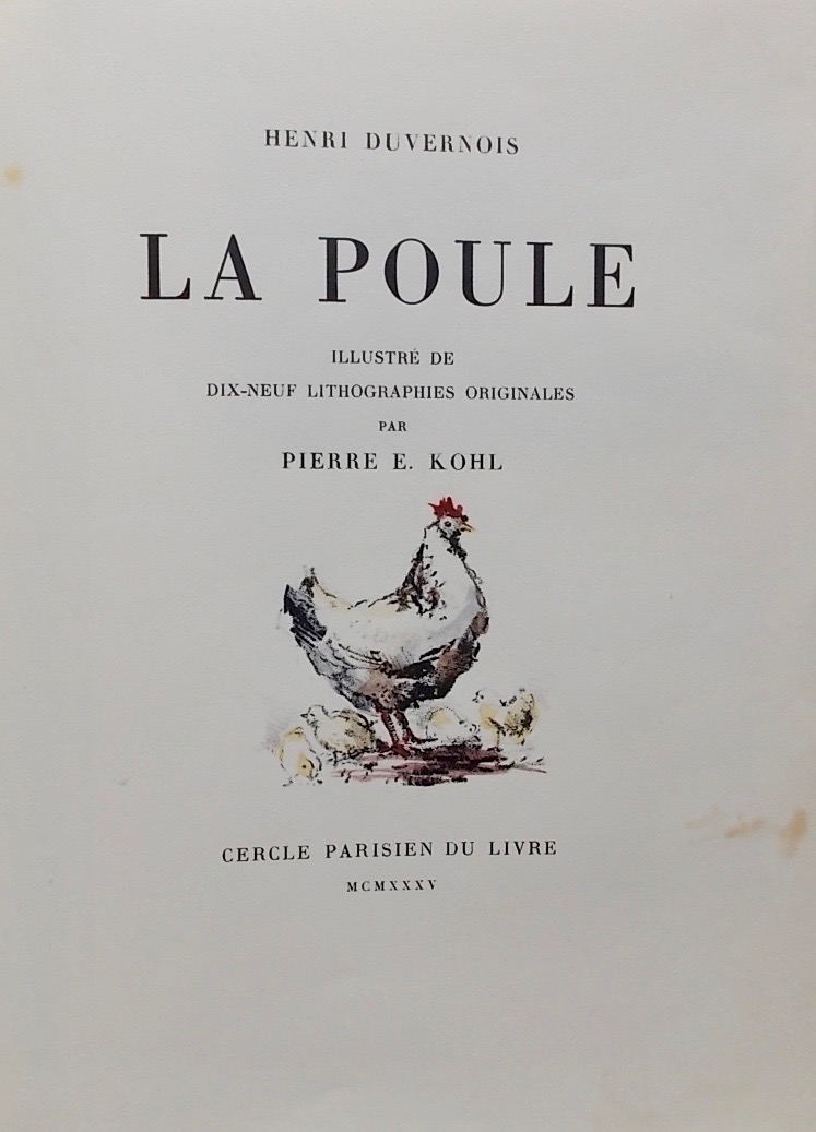 [KOHL (Pierre)] – DUVERNOIS (Henri) la poule. Paris, Cercle Parisien du Livre, 1935.