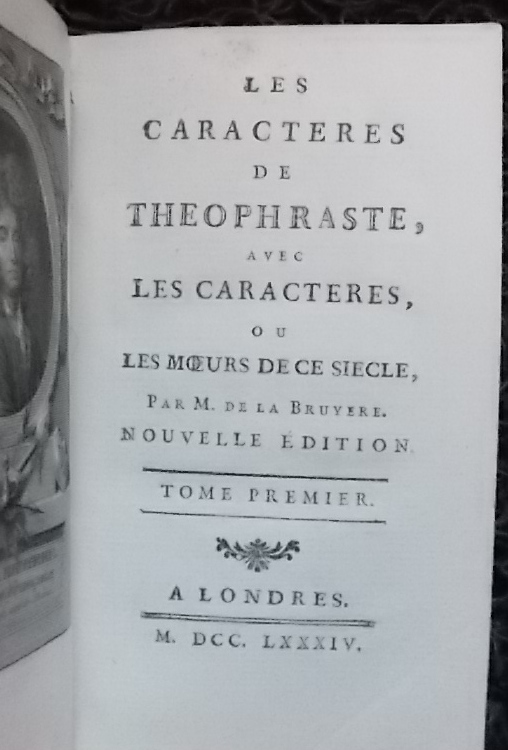 ![LA BRUYERE (Jean de) Les caractères de Théophraste, avec les caractères ou les moeurs de ce siècle. Nouvelle édition. Londres [Paris, Cazin], 1784. – Image 2](https://cabinetamateur.ch/wp-content/uploads/2025/10/29019_2.jpg)