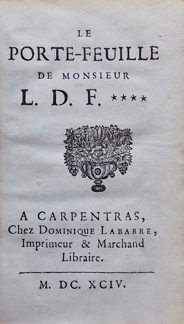 [LA FAILLE (L. DE)] Le porte-feuille de Monsieur L. D. F. ****. Carpentras, chez Dominique Labarre, 1694.