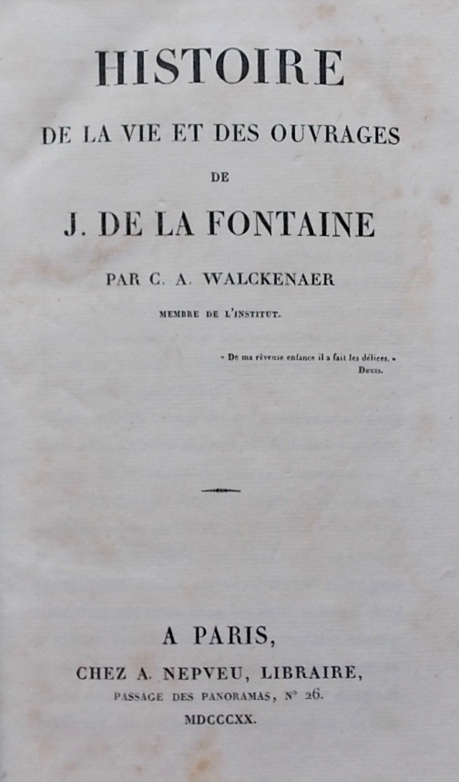 ![[LA FONTAINE] - WALCKENAER (C. A.) Histoire de la vie et des ouvrages de J. de La Fontaine. Paris, chez A. Nepveu, 1820.](https://cabinetamateur.ch/wp-content/uploads/2025/12/38968_1.jpg)
