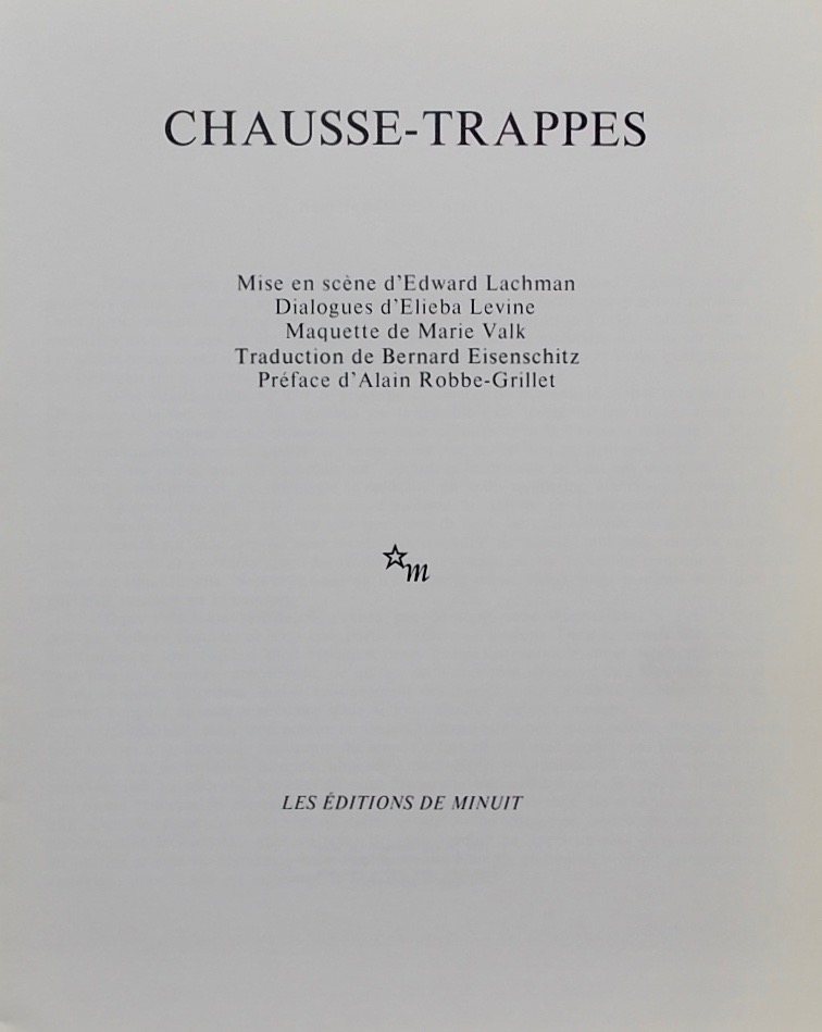 LACHMAN (Edward) – LEVINE (Elieba) – ROBBE-GRILLET (Alain) Chausse-Trappes. Paris, Editions de Minuit, 1981.