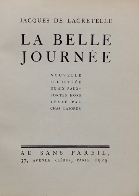 LACRETELLE (Jacques de) La belle journée. Paris, Au Sans Pareil, 1925.