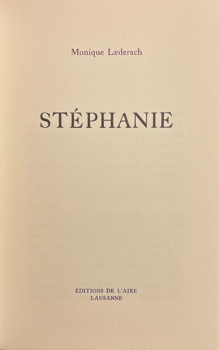 LAEDERACH (Monique) Stéphanie. Lausanne, L’Aire, 1978.