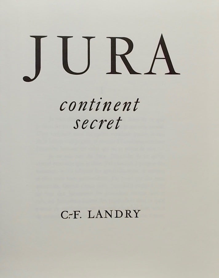 LANDRY (C.-F.) Jura, continent secret. La Chaux-de-Fonds, Haefeli & Co, 1957.