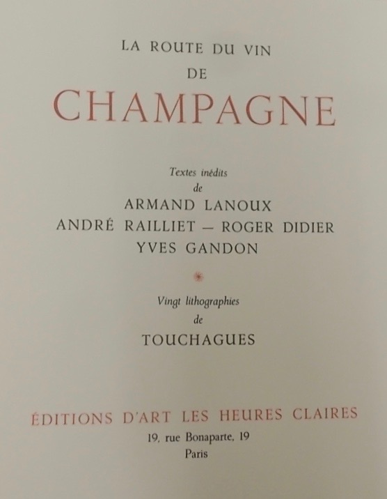 LANOUX (Armand) et al. la route du vin de Champagne. Paris, Les Heures Claires, 1966.