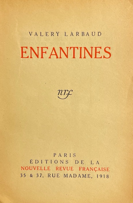 LARBAUD (Valery) Enfantines. Paris, NRF, 1918.